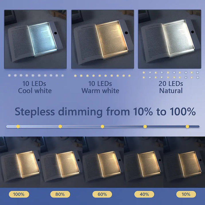 Answer 1: The lamp features three adjustable color settings: warm, white, and neutral. This allows you to customize the lighting according to your reading mood or environment, whether you need a calming atmosphere for relaxing or brighter light for studying.